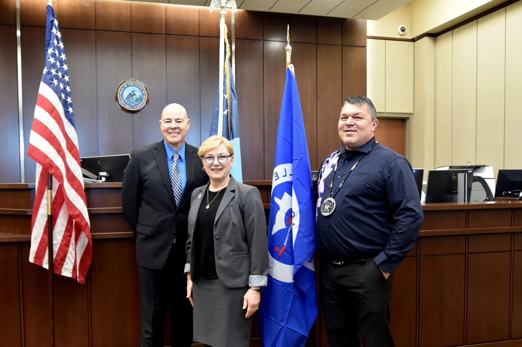 Under the installation, Mille Lacs Band of Ojibwe flags will be displayed alongside the United States and Minnesota state flags in all Pine County courtrooms. The placement reflects a deliberate recognition that tribal nations are sovereign governments whose authority, laws, and people continue to shape the region.